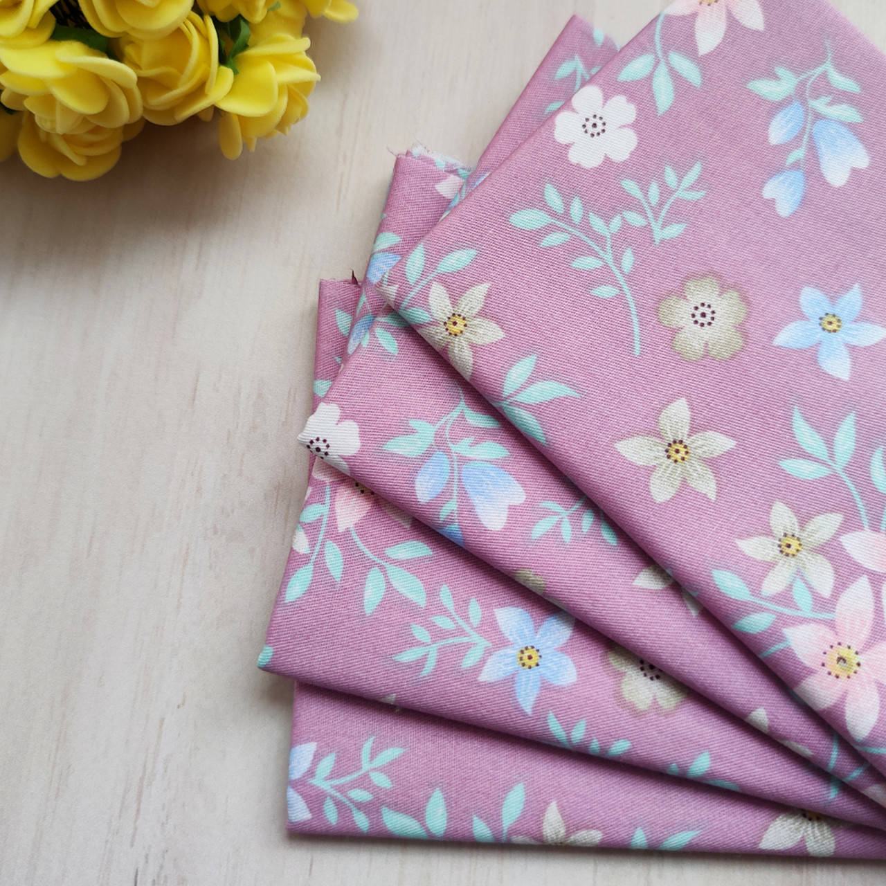 Ткань хлопок для рукоделия "Остроугольные цветы" на лиловом фоне