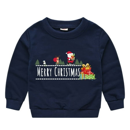 Toddler Boys and Girls Christmas Pullover Sweater Fashion Christmas Cartoon Print Round Neck Long Sleeve Sweatshirt Children s Casual Top