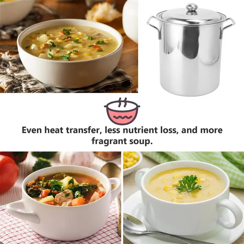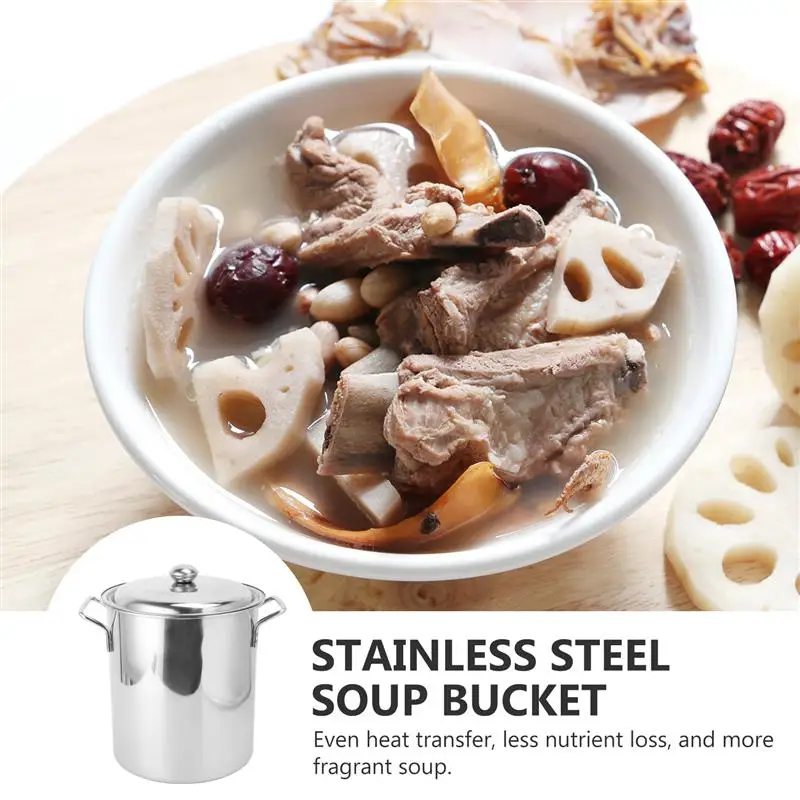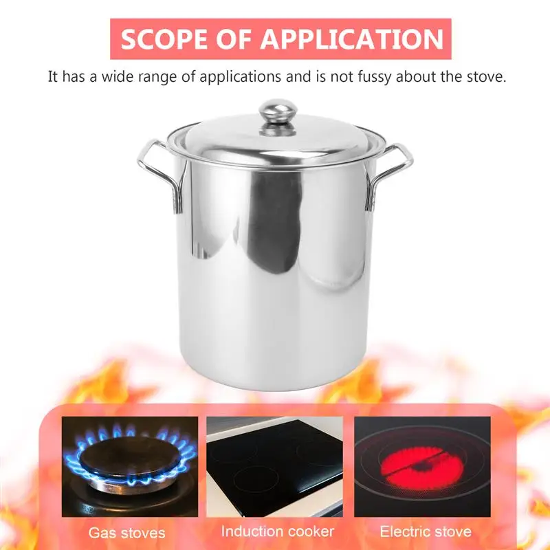 Толстая кастрюля из нержавеющей стали, большая емкость, суповая кастрюля, многофункциональное ведро для риса с крышкой (ручка в полоску) (30 с...