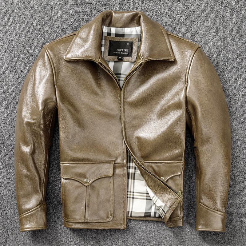 Толстая коровья кожа первого слоя Натуральная кожа Мужская кожаная куртка Красивая куртка с лацканами Модная осенне-зимняя куртка 5XL