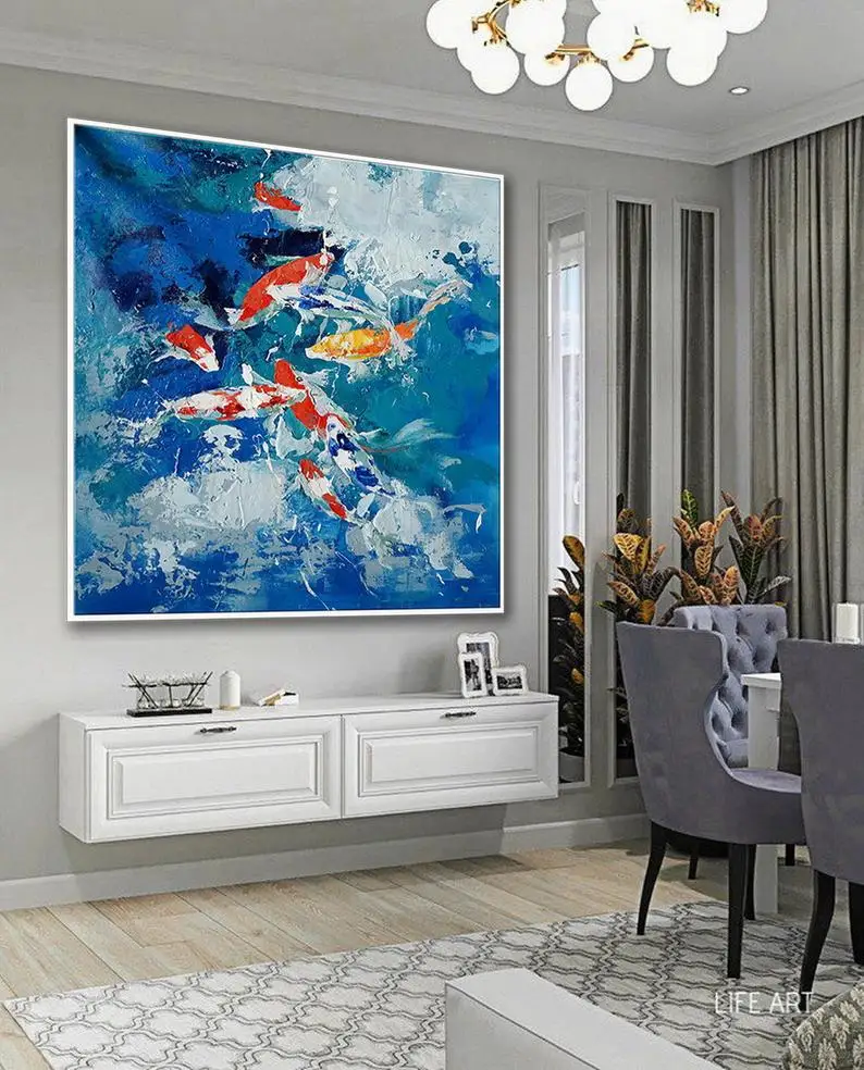 Толстая красочная палитра, нож, искусство, живопись, очень большая квадратная Современная Настенная картина, серый, бирюзовый, синий