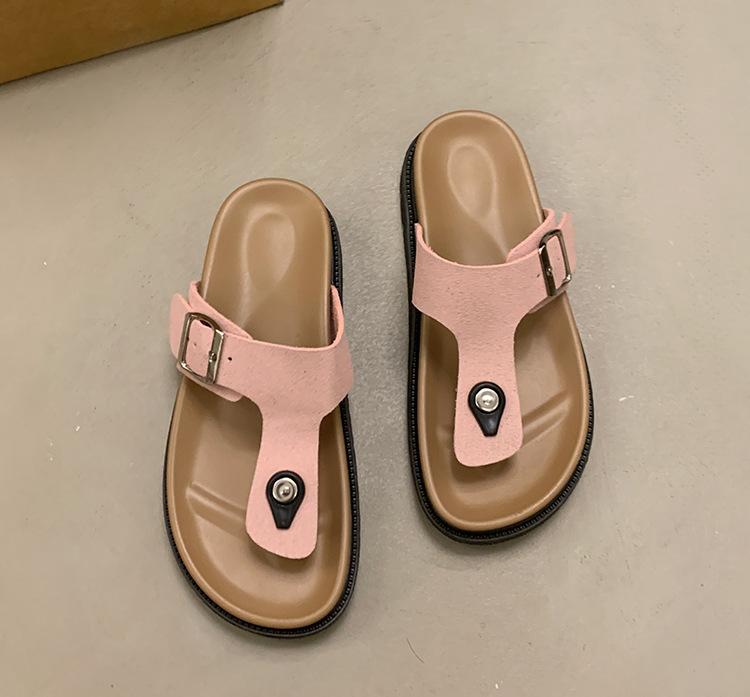 Толстая подошва, тапочки, лето, верхняя одежда, зажим для носка, плоский ремешок, регулируемые, квадратная пряжка, тапочки на толстой подошве, шлепанцы 42 розовый