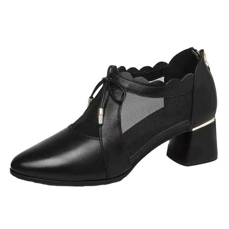 Babysbule Womens Shoes Clearance Women s Shoes Fashion Solid Color Minimalistic Net Yarn Hollow Out Middle Heels Thick Heel Sandals
