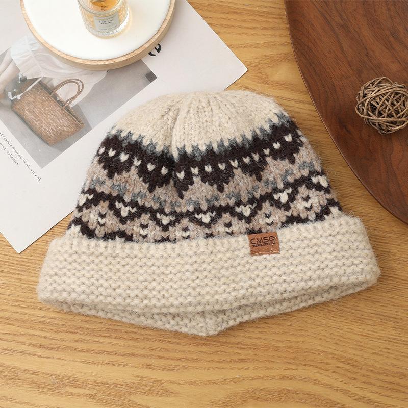 Толстая универсальная вязаная шапка в стиле Fair Isle для женщин на осень и зиму, ветрозащитная шапка с защитой ушей для улицы, повседневная теплая шерстяная шапка average size