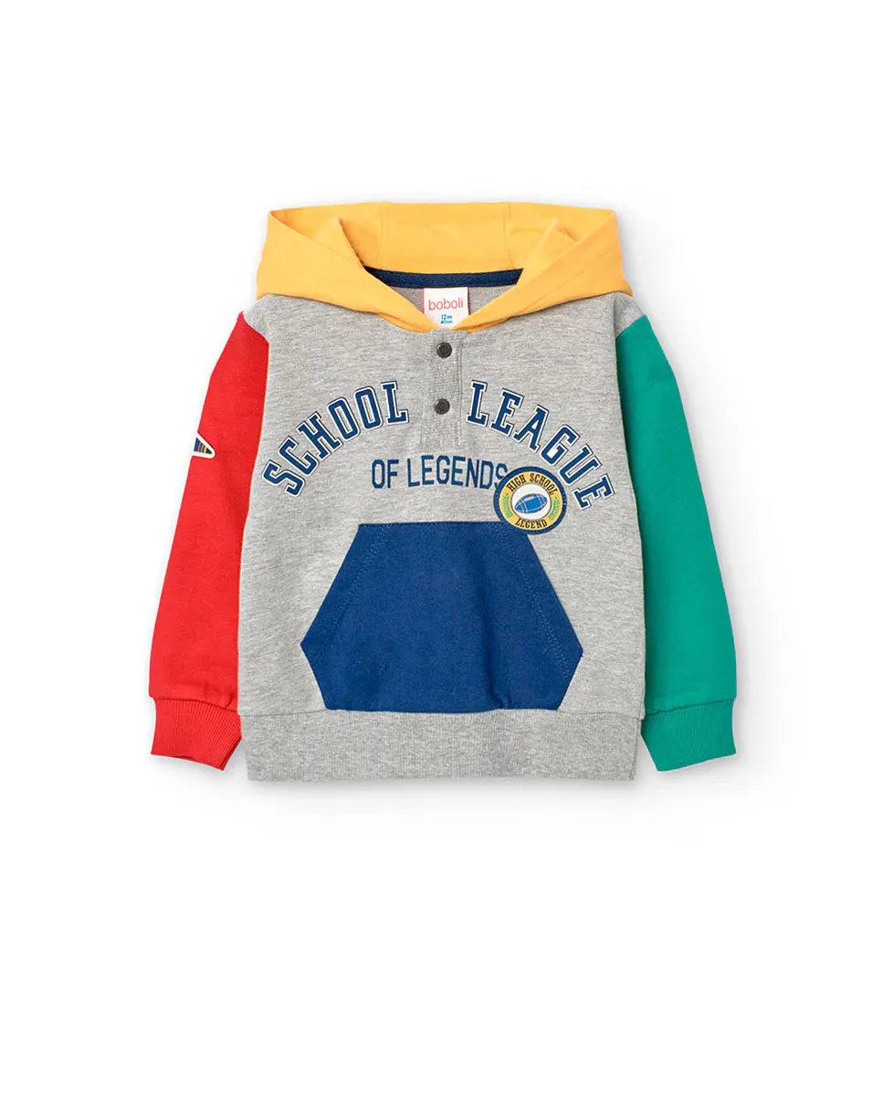 Толстовка в стиле колор-блок для мальчика с капюшоном и карманом-кенгуру Boboli, светло-серый