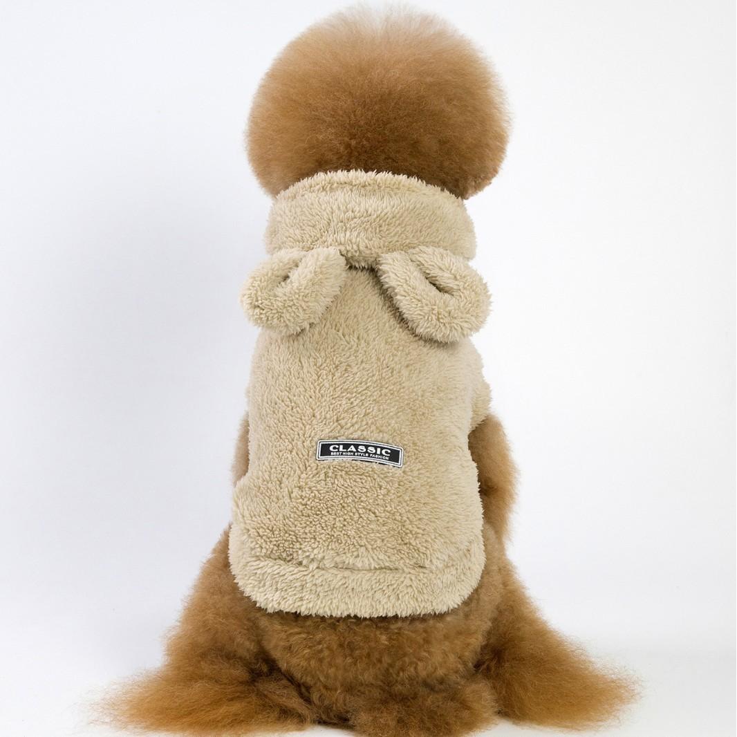 Толстовка для питомца с медвежьими ушками, очень теплая флисовая, зимняя одежда, однотонная, с капюшоном, одежда для кошек, собак, осенняя одежда для щенков, маленьких и средних собак M абрикосовый