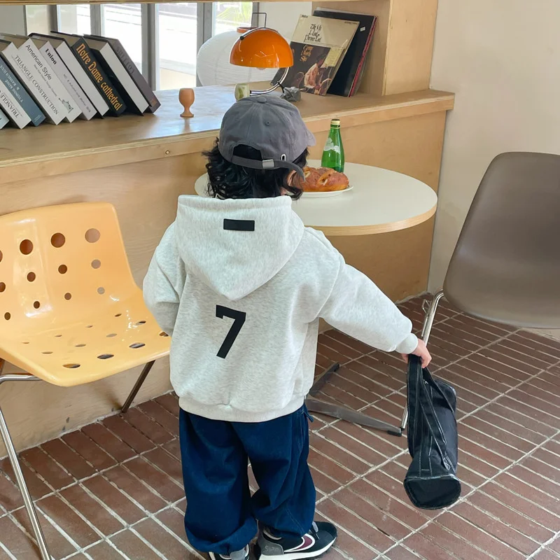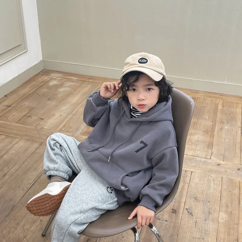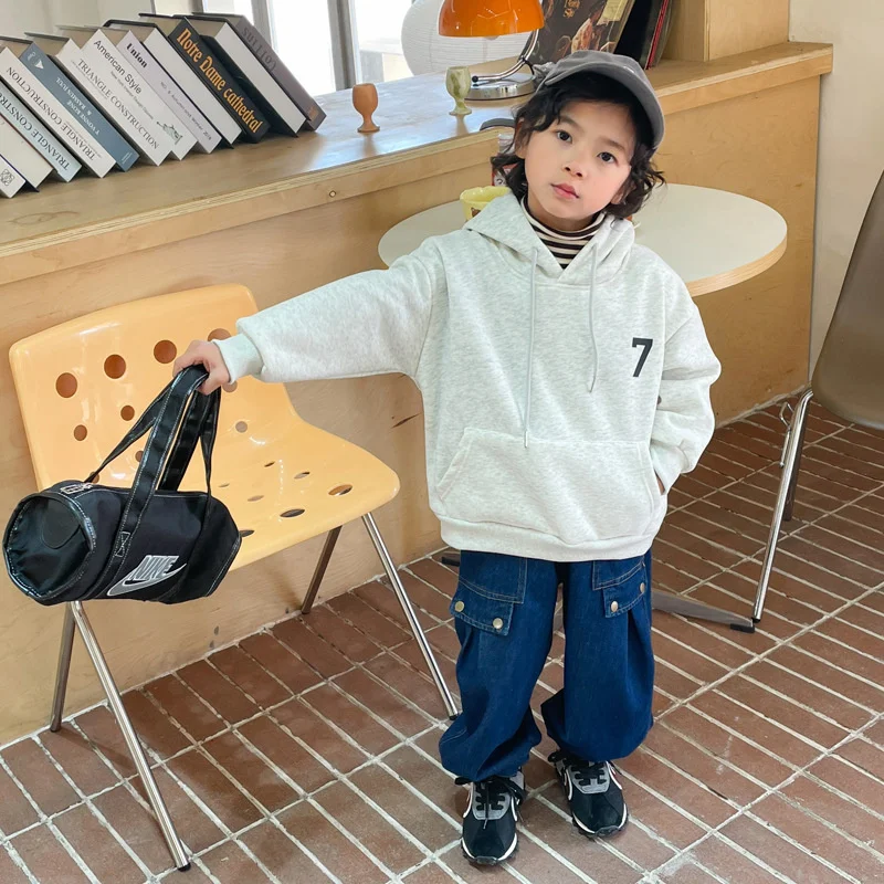 Толстовки с капюшоном для мальчиков, хлопковые толстые вельветовые свитшоты 2022 бежевого цвета, теплая зимняя и осенняя спортивная детская ...