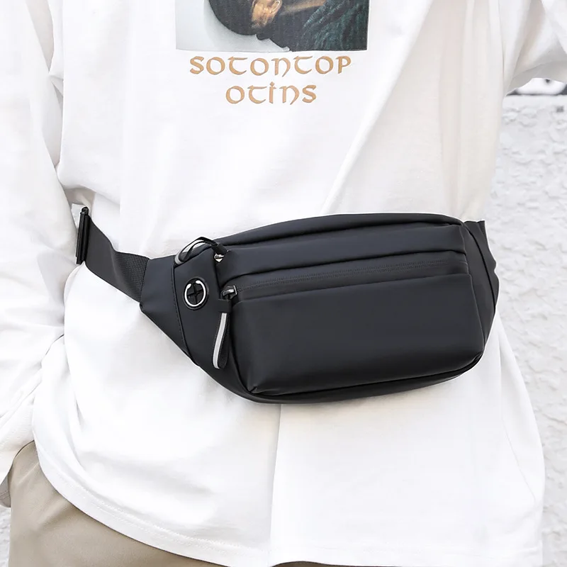 Nylon fabric waist bag for men, casual crossbody bag, large-capacity waterproof single-shoulder chest bag