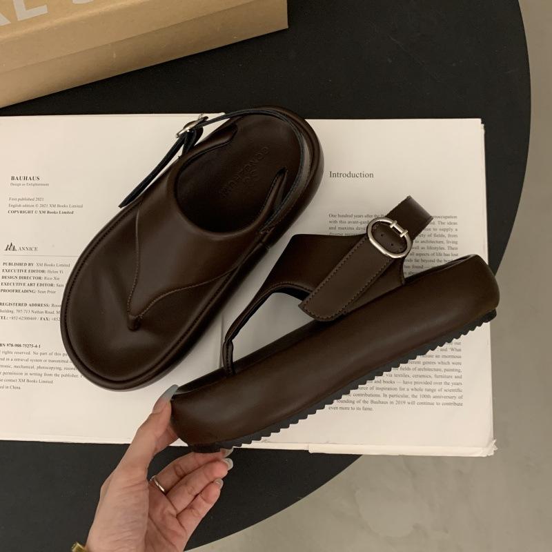 Толстоподошвенные шлепанцы-елочки, женская летняя обувь 2025, новая модная обувь, суперпопулярная у интернет-знаменитостей, пляжные римские туфли с носком 40 коричневый