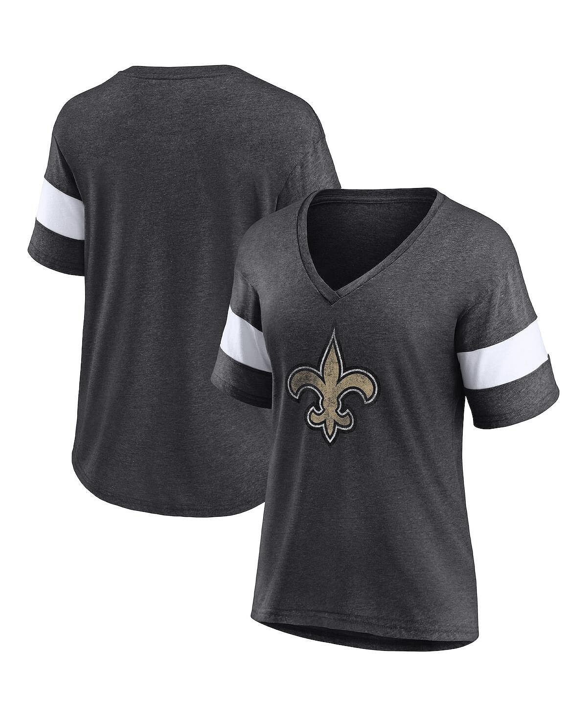 Женская фирменная угольно-белая футболка New Orleans Saints Distressed Team Tri-Blend с v-образным вырезом Fanatics, Белый, Женская фирменная угольно-белая футболка New Orleans Saints Distressed Team Tri-Blend с v-образным вырезом Fanatics