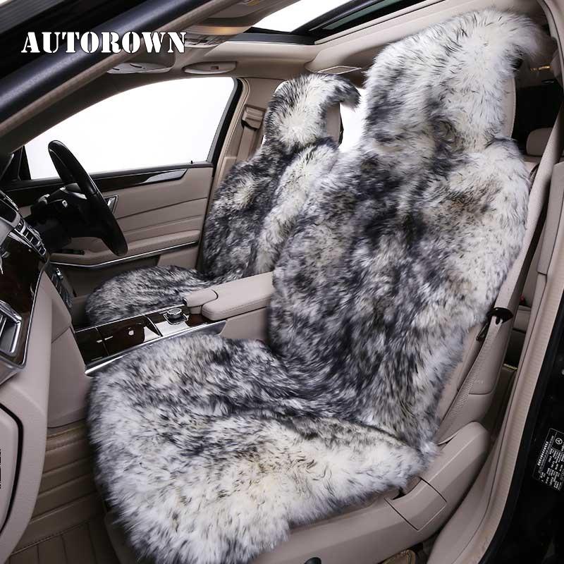 AUTOROWN Natural Australian Sheepskin Car Seat Covers For Front Seat 1pc Universal Size Car Cushions Interior Accessories