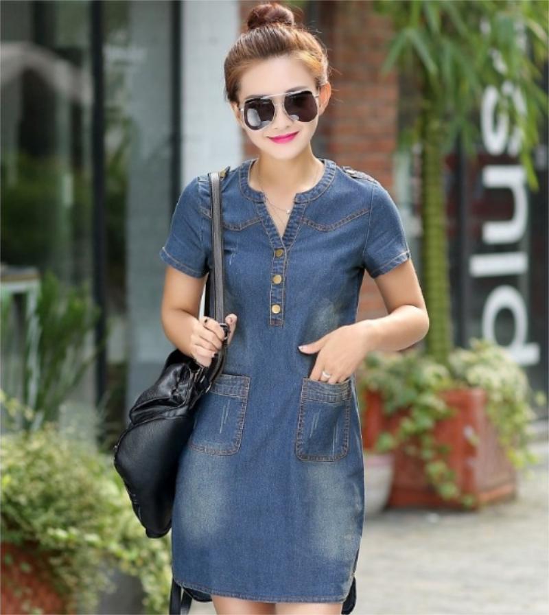 Тонкая повседневная женская рубашка с V-образным вырезом для офиса, джинсы, большие размеры, джинсовое платье, цвета 2 XXXXL темно-синий