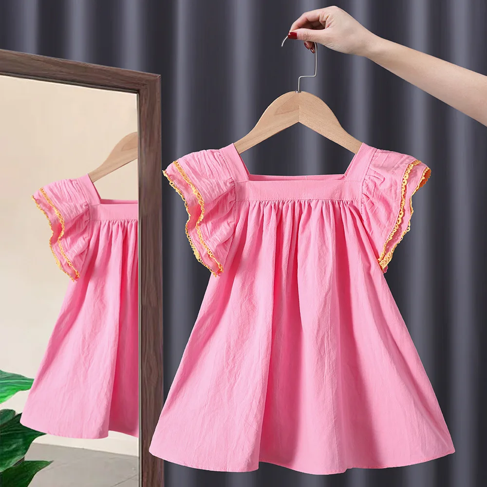 Тонкое летнее платье для девочек 1-6 лет, летние детские платья принцессы с рукавами-фонариками, повседневное пляжное платье-трапеция с обор...