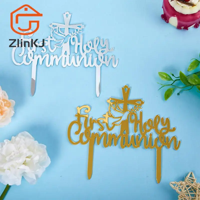 Топпер для торта на Первое Святое Причастие, акриловые центральные части для крещения ребенка, украшения для вечеринки в честь Дня Рождения Ребенка