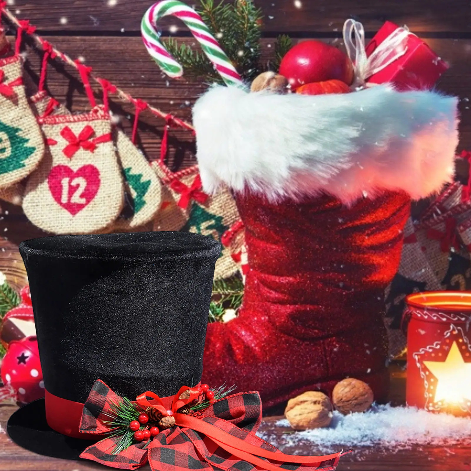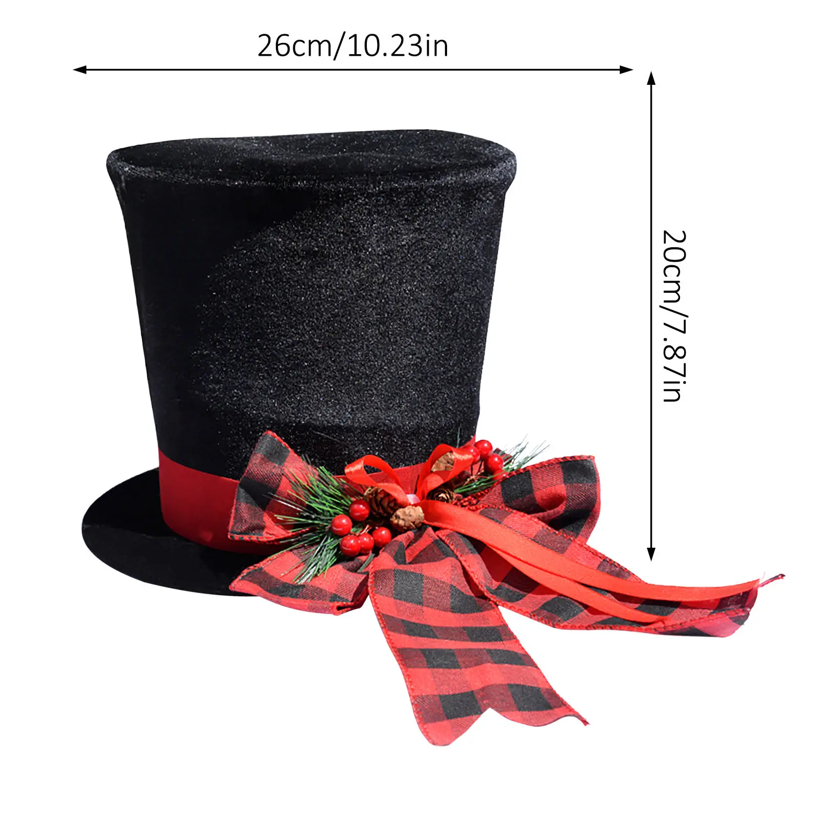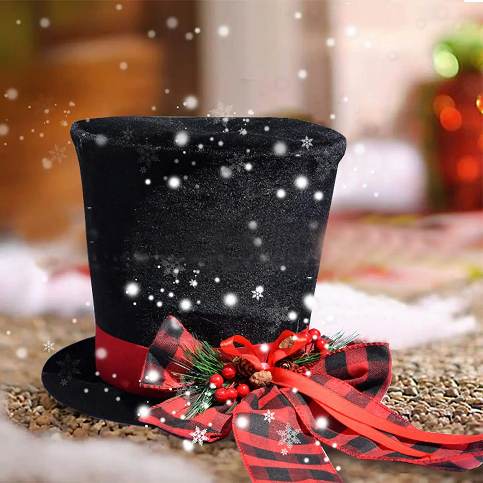 Топпер на елку, рождественские украшения, обновленная Складная Классическая клетчатая верхняя шапка с красным бантом, Топпер на елку, украшение, черная верхняя зимняя шапка