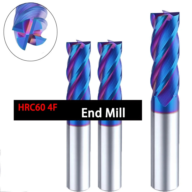 Торцевая фреза синий технология нанесения нанометрового Вольфрам Сталь фреза фрезы для станка с ЧПУ центр HRC60 4 флейты для вырезания гребне...