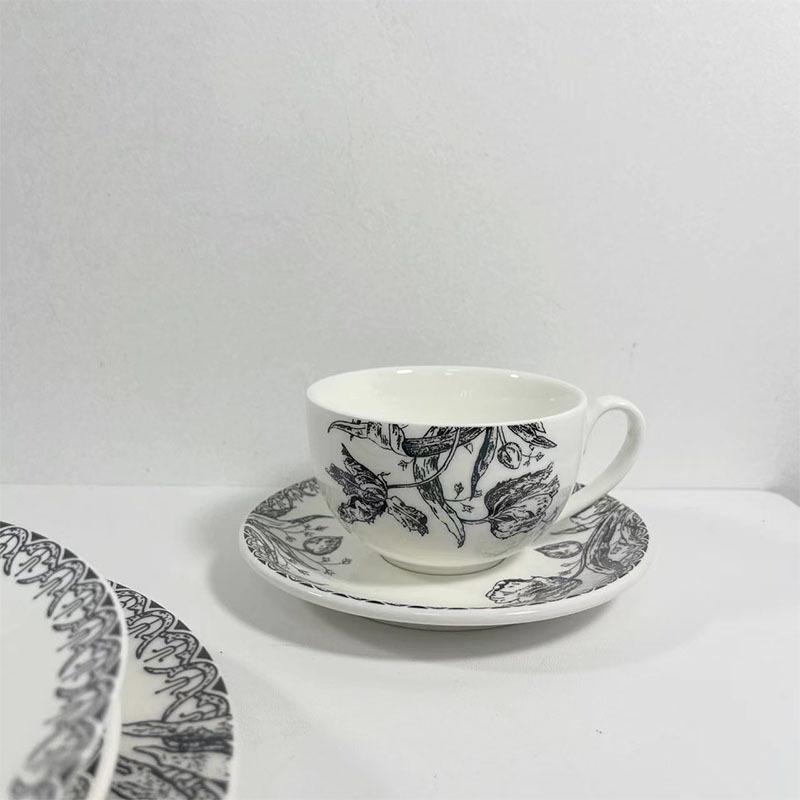 Точечная Премиум Французская Черная Цветочная Керамическая Тарелка Искусство Западная Еда Суповая Тарелка Чашка Тарелка Расписанная вручную Десерт Стейк Обед