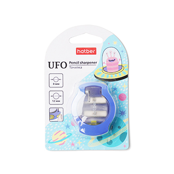 Точилка Hatber Ufo Пластиковая Цветная с контейнером с 2-мя отверстиями с крышкой, Китай