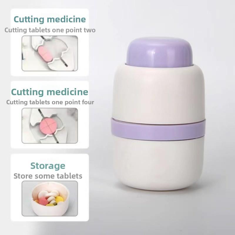 Точный делитель таблеток и резак для таблеток - Портативный инструмент для деления на 4 части с безопасным лезвием для точной дозировки лекарств фиолетовый