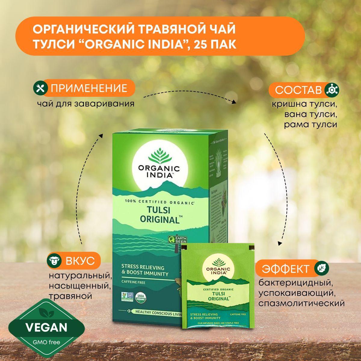 Травяной чай Тулси для профилактики работы центральной нервной системы и дыхательных путей ORGANIC INDIA, 25пак