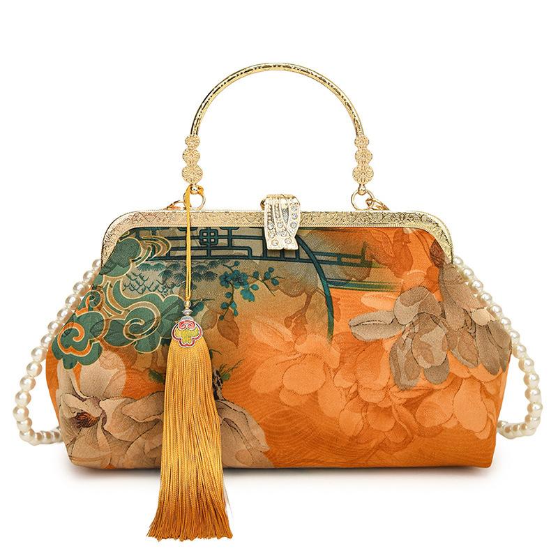 Традиционная китайская шелковая сумочка с жемчужной застежкой, винтажная сумка через плечо в стиле ципао для свадеб и фестивалей жёлтый