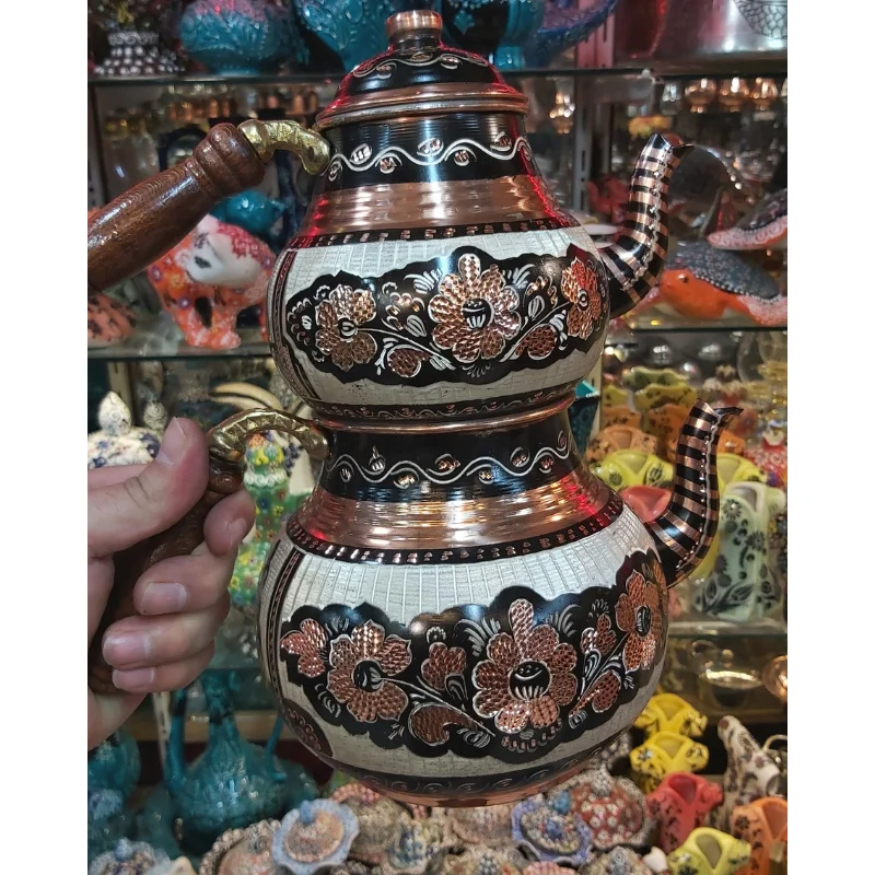 Традиционная турецкая ручной работы Медь Чай горшок Винтаж чайник Кухня хит продаж Чай чайник Луженая комплект-свисток из нержавеющей стал...