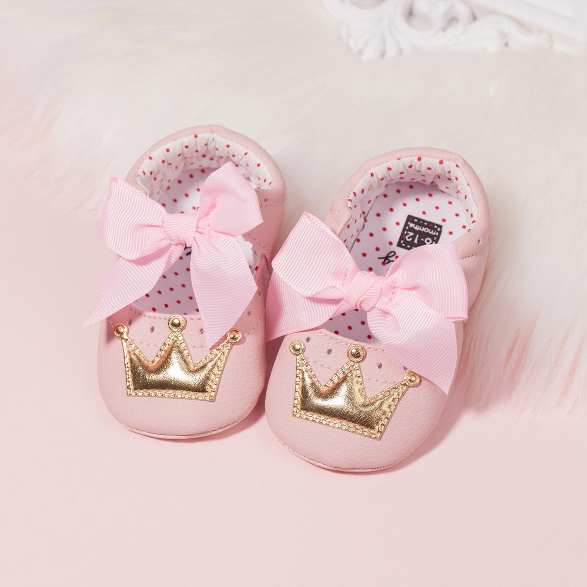 Трансграничные новые розовые туфельки принцессы с бантом, нескользящая мягкая подошва, обувь для малышей, обувь для младенцев, розовый 12cm / 4.7in