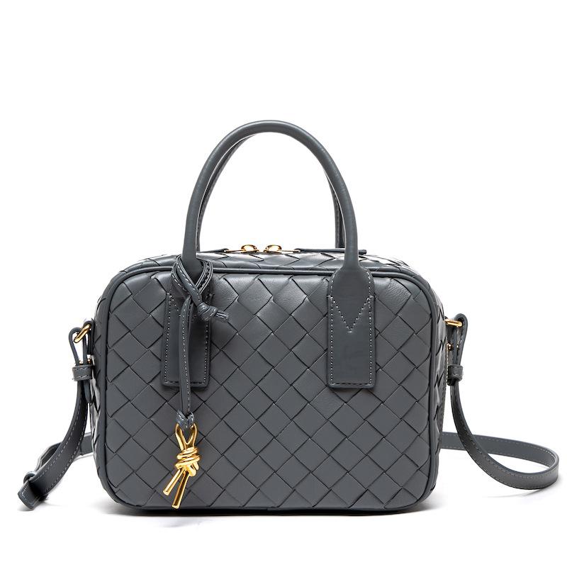 Трансграничный тренд Новая женская сумка из овчины высшего слоя Ручная работа Сумка для ношения в руке Диагональная женская плетеная сумка 23CMx9CMx16CM темно серый