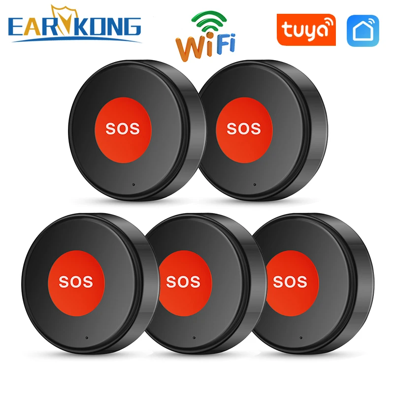 Тревожная кнопка Tuya WIFI SOS, черная одна кнопка, приложение Smart Life, аварийные оповещения, перезаряжаемая батарея для пожилых детей, инвалидов