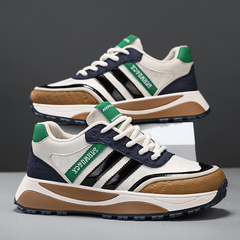 Трендовая брендовая мужская обувь зима новая кожаная поверхность удобная повседневная мягкая подошва модная три полоски корейская версия кроссовок для папы 44