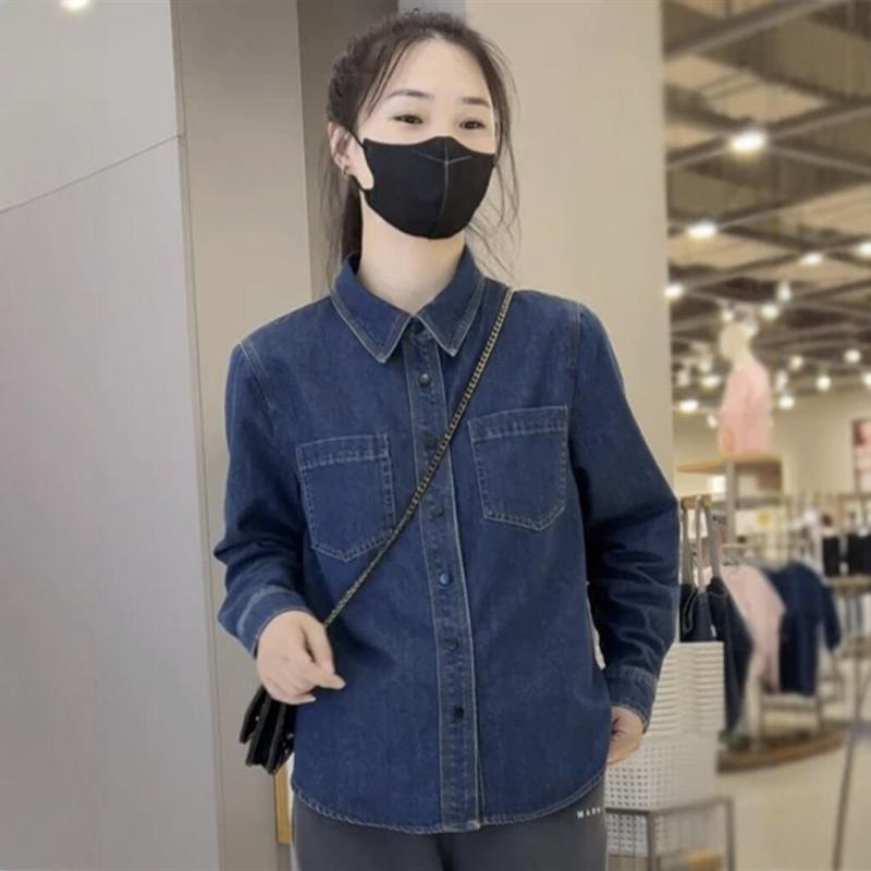 Трендовая женская джинсовая рубашка с длинным рукавом в корейском стиле - Приталенная и универсальная для осени Extra Large темно-синий