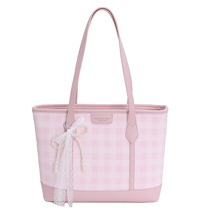 Трендовая модная контрастных цветов повседневная дорожная женская сумка большой вместимости, простая и универсальная сумка-тоут через плечо, большая сумка Without pendant розовый