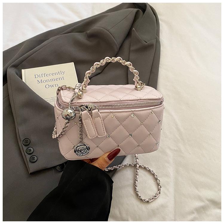 Трендовая сумка-мессенджер с заклепками женская 2025 новая вышитая нить ромбовидная текстура для поездок на работу цепочка на одно плечо подмышку маленькая квадратная сумка фиолетовый