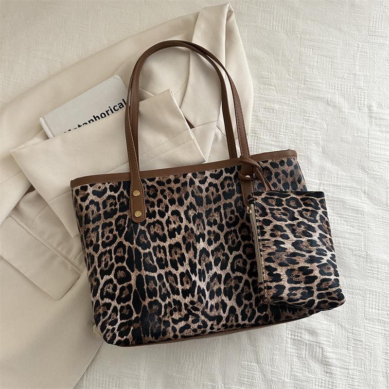 Тренд большая вместимость зарубежный стиль мода личность досуг 2025 осень новая леопардовый принт сумка-тоут на плечо для мамы коричневый