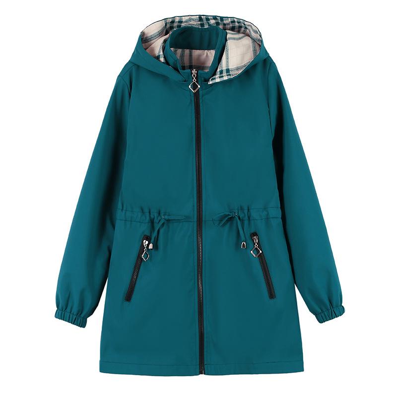 Тренч средней длины с капюшоном для женщин, весенне-осенняя эластичная свободная куртка среднего возраста с карманами на молнии