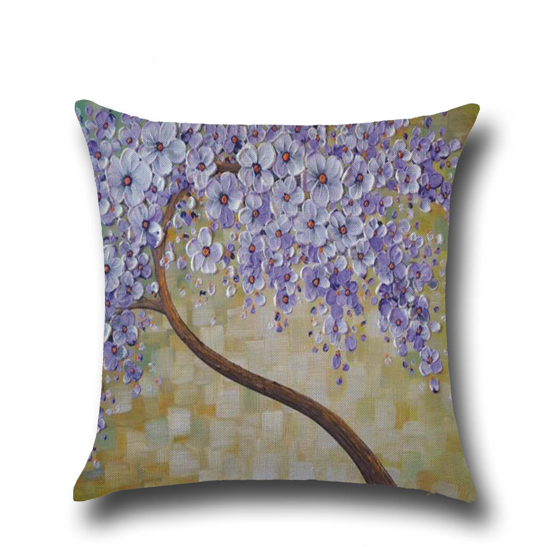 Трехмерная масляная живопись Деревья Цветы Хлопково-льняная наволочка для подушки Чехол для поясничной подушки для автомобиля 50*30cm
