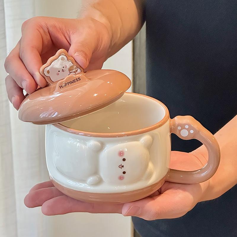 Трехмерная рельефная керамическая кружка с медведем, подставка для мобильного телефона для просмотра дорамы, бытовая кружка, подарок на день рождения, сувенирная кружка 370ML