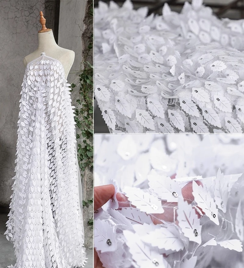 Трехмерная сетчатая ткань с листьями дерева, прозрачная кружевная ткань с вышивкой, вечернее платье, занавеска для свадебного платья