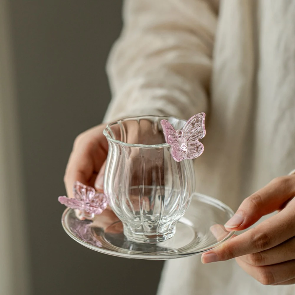 Трехмерная чашка-бабочка и блюдце, простая стеклянная чашка, креативный набор тарелок для кофейной чашки ручной работы, чашки для послеобеденного чая, тарелки, подарки