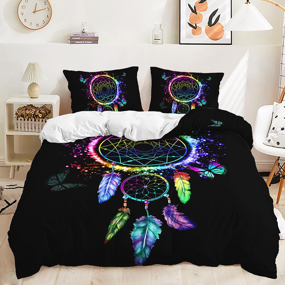 Трехпредметный 3D пододеяльник с градиентным переходом, комплект постельного белья с ловцом снов и кошкой 135 * 200 (two-piece set) 90g