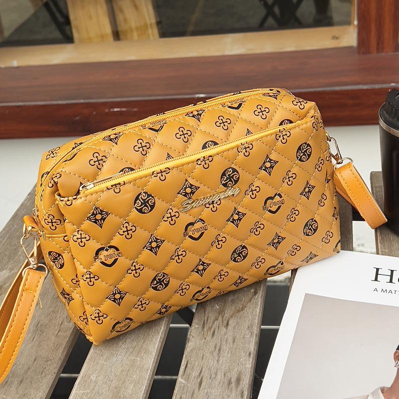 Трехслойная сумка для фотокамеры на молнии, большая вместимость, удобная косметичка, корейская модная сумка для хранения, вышитая сумка на плечо жёлтый