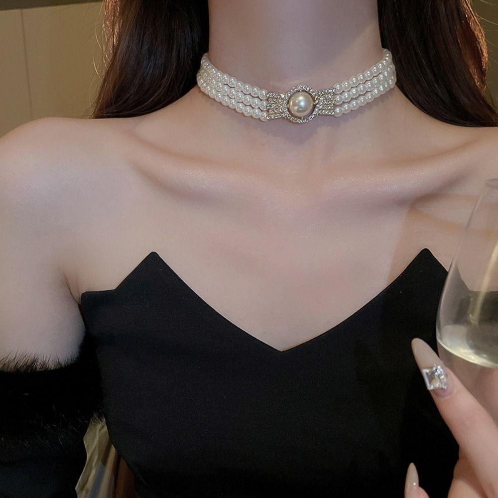 Трехслойное ожерелье со стразами в корейском стиле, колье с жемчужным воротником, милый подарок