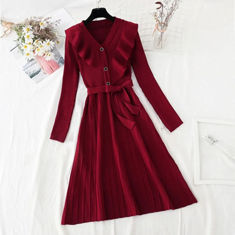 Трикотажное красное платье в рубчик, пуловер с длинным рукавом, полосатые платья миди, ТРАПЕЦИЕВИДНОЕ Женское Платье макси с V-образным вырезом, женская одежда черного цвета