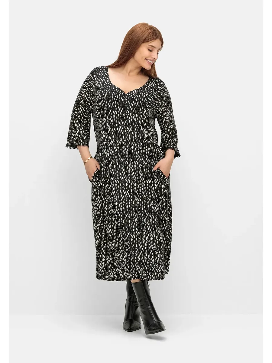 Трикотажное платье Sheego "Большие размеры", миниатюрного кроя, с узором по всей поверхности, черный