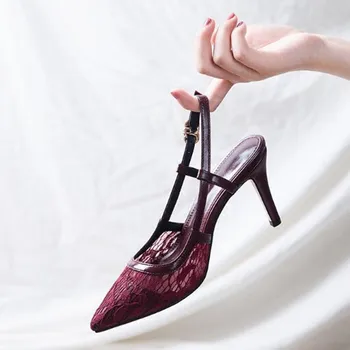 Fashion small size sandals bud mesh surface breathable wine red sandals big Size Sexy tip head high heels Female Women's sandals