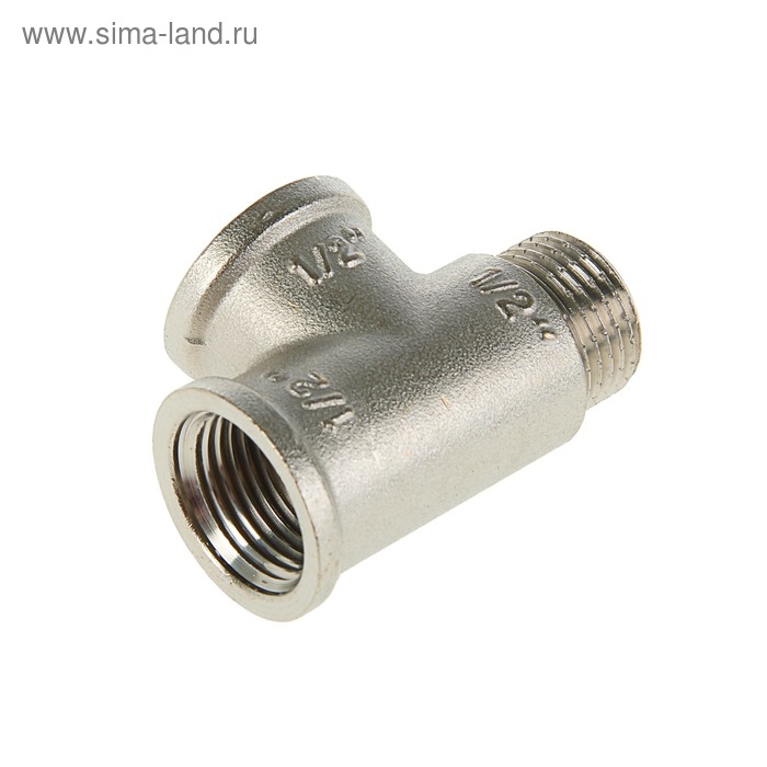Тройник Valtec, 1/2", внутренняя/внутренняя/наружная резьба, никелированная латунь