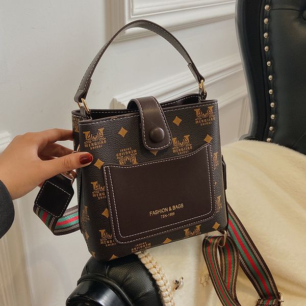 Light Luxury Wide Shoulder Bucket Bag 2024 Single Shoulder Bag Popular Women's High end Fashion Crossbody B
