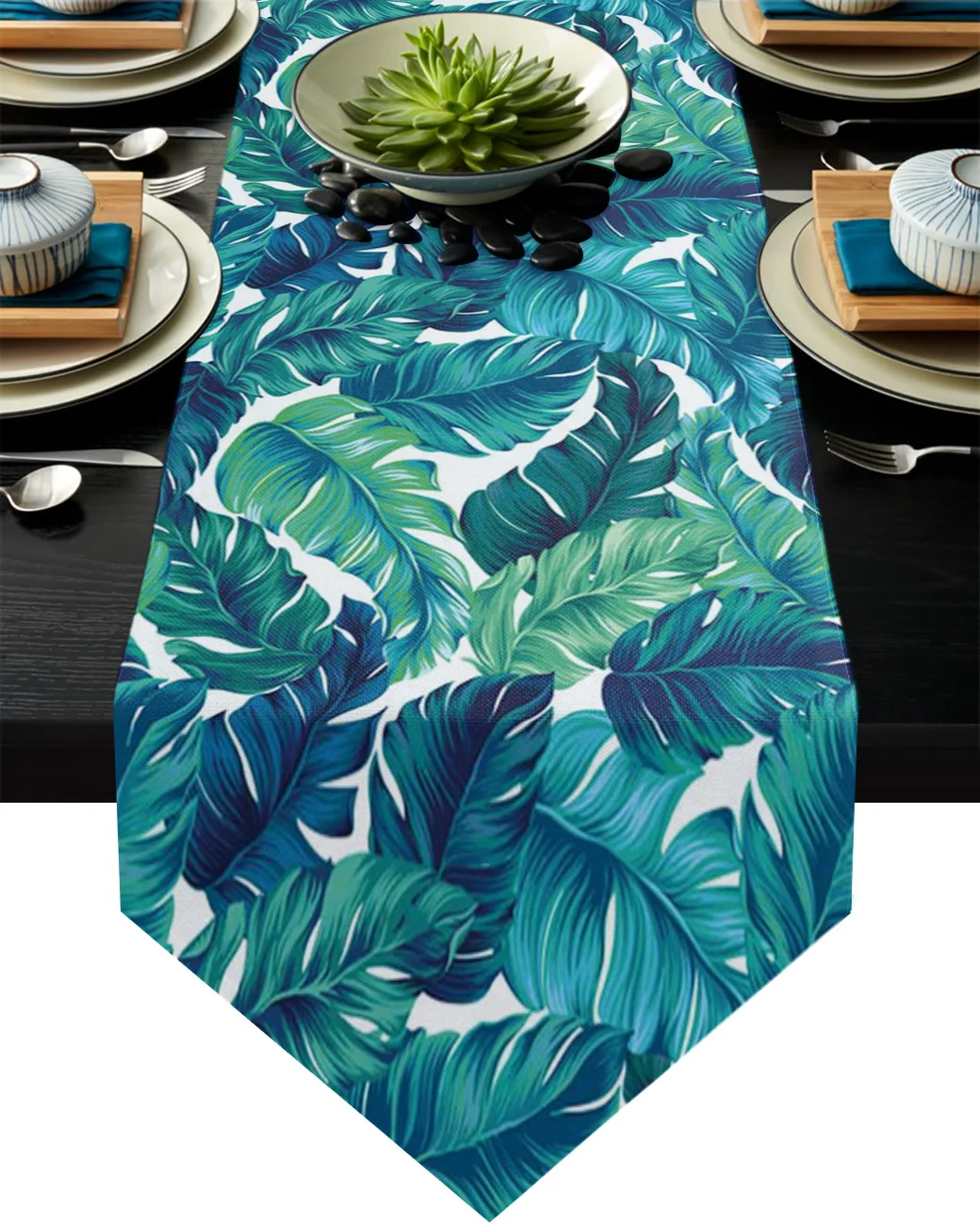 Тропические листья, Зеленые пальмовые листья, современная настольная дорожка для свадьбы, вечеринки, мероприятия, украшение для дома, скате...