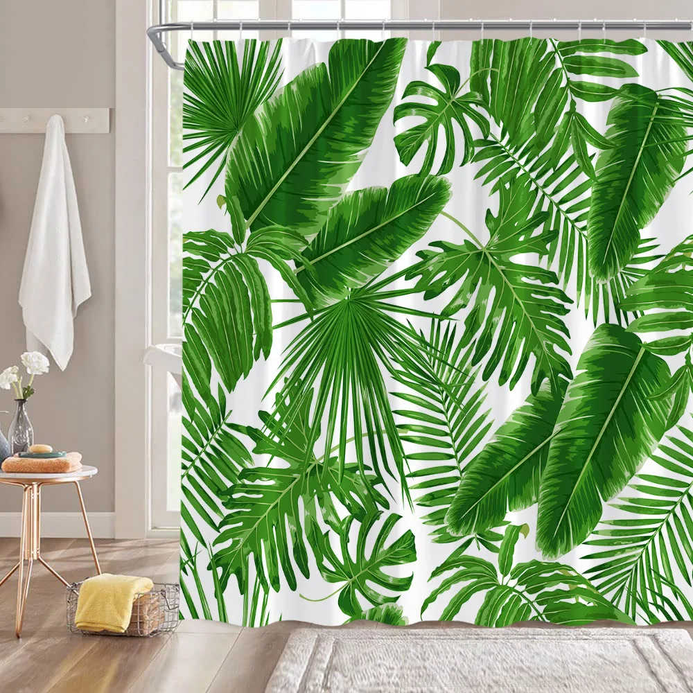 Тропические листья, занавески для душа, Зеленые пальмовые листья, Monstera, акварельные растения, Современная Фотоштора, декор с крючками