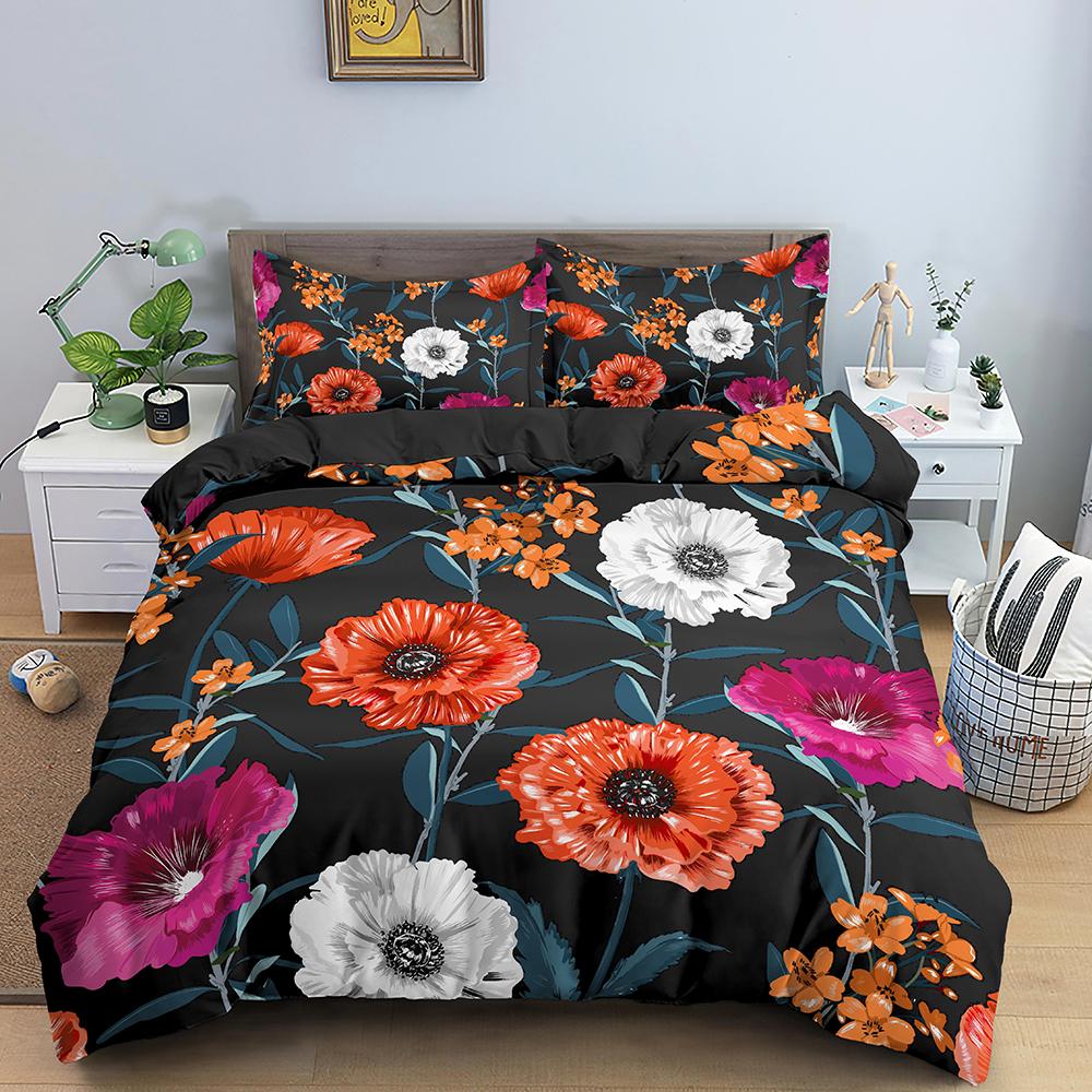 Тропические цветы King Queen Комплект постельного белья Красочный винтажный цветочный пододеяльник Зеленые листья Покрывало из полиэстера Покрывало EU single(135x200cm)